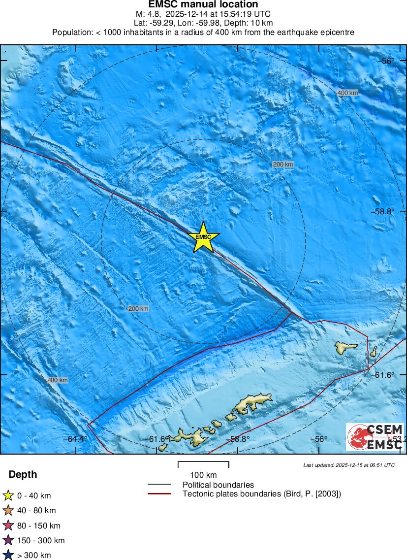 | 4.8 | 10 | 8549 | 15:54:19 | Link | Light earthquake - DRAKE PASSAGE - December 14, 2025 |