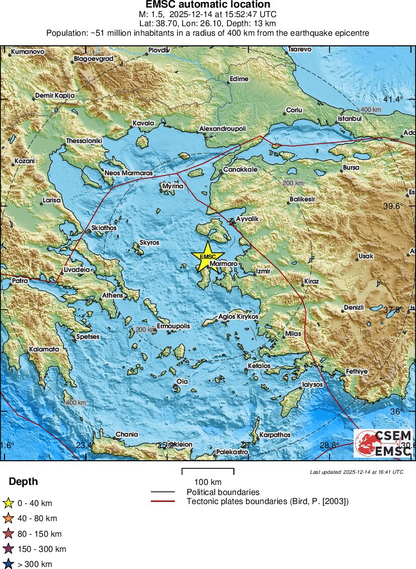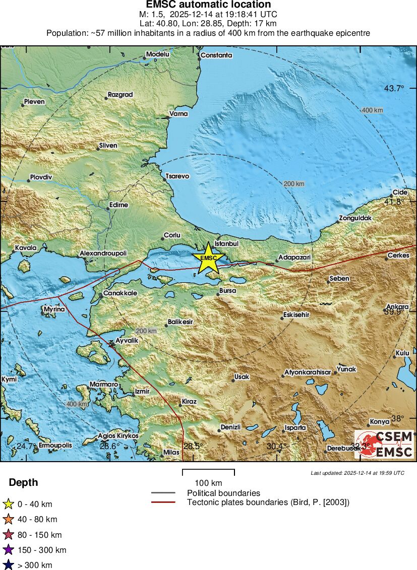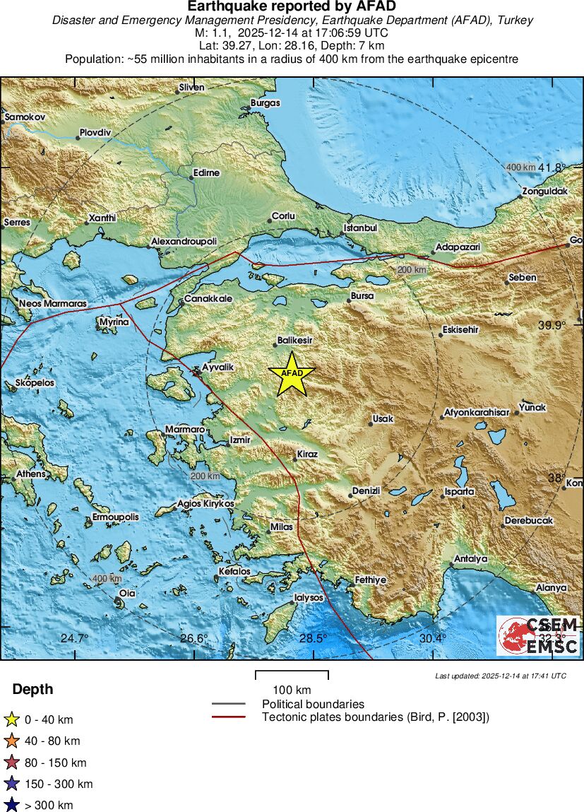 | 1.0 | 8 | 1841 | 17:46:01 | Link | Minor earthquake - WESTERN TURKEY - December 14, 2025 |