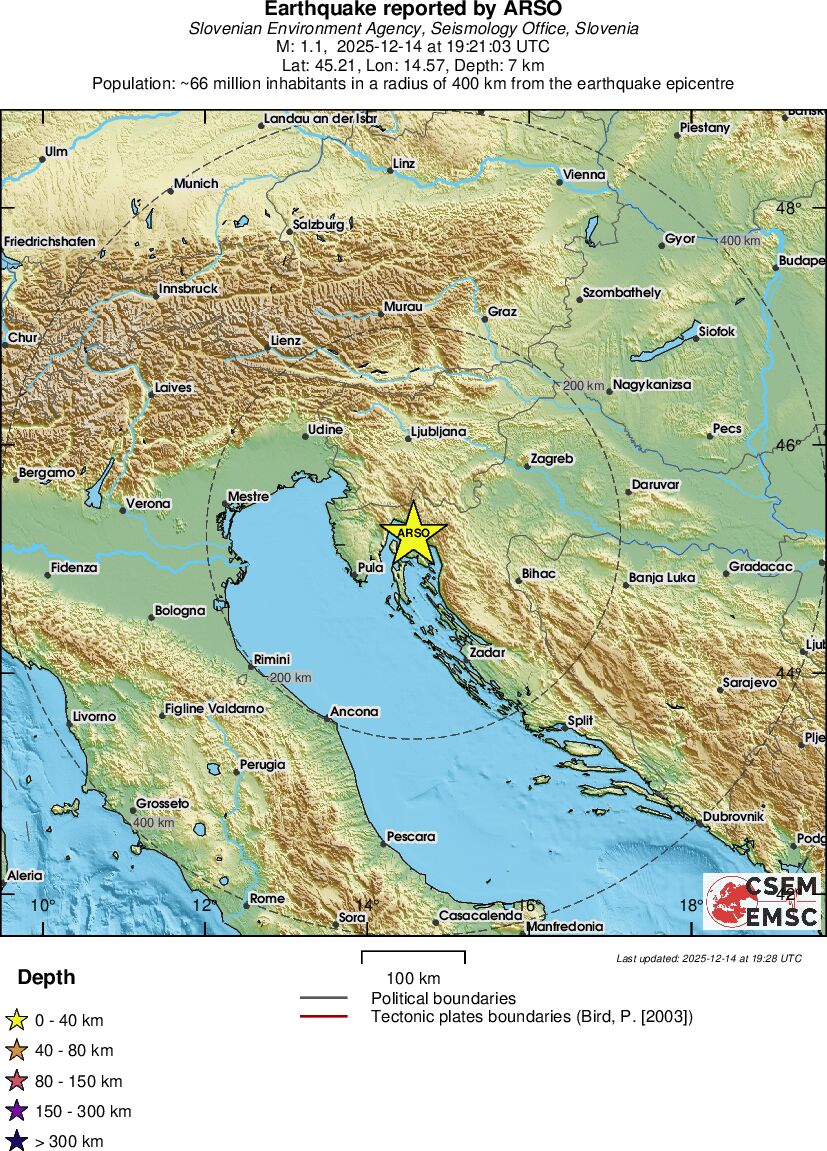| 1.1 | 7 | 1069 | 19:21:03 | Link | Minor earthquake - CROATIA - December 14, 2025 |