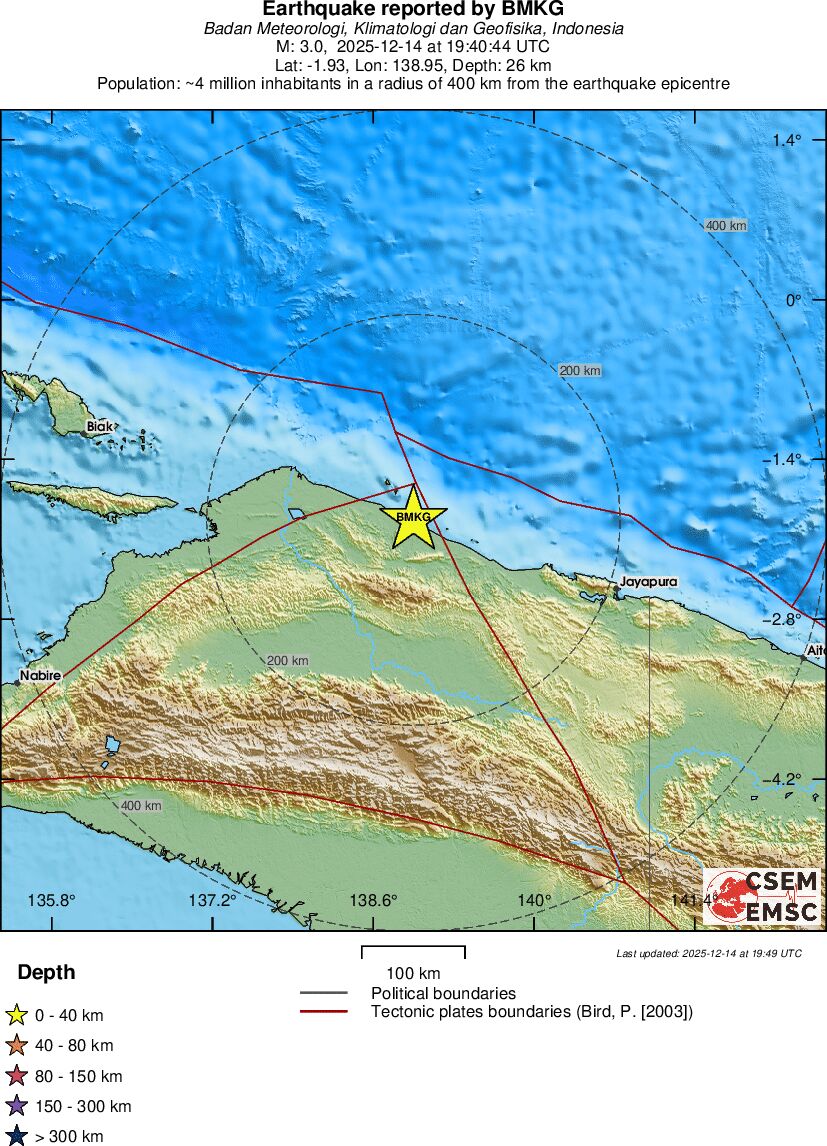 | 3.1 | 23 | 8157 | 18:00:58 | Link | Minor earthquake - PAPUA, INDONESIA - December 14, 2025 |