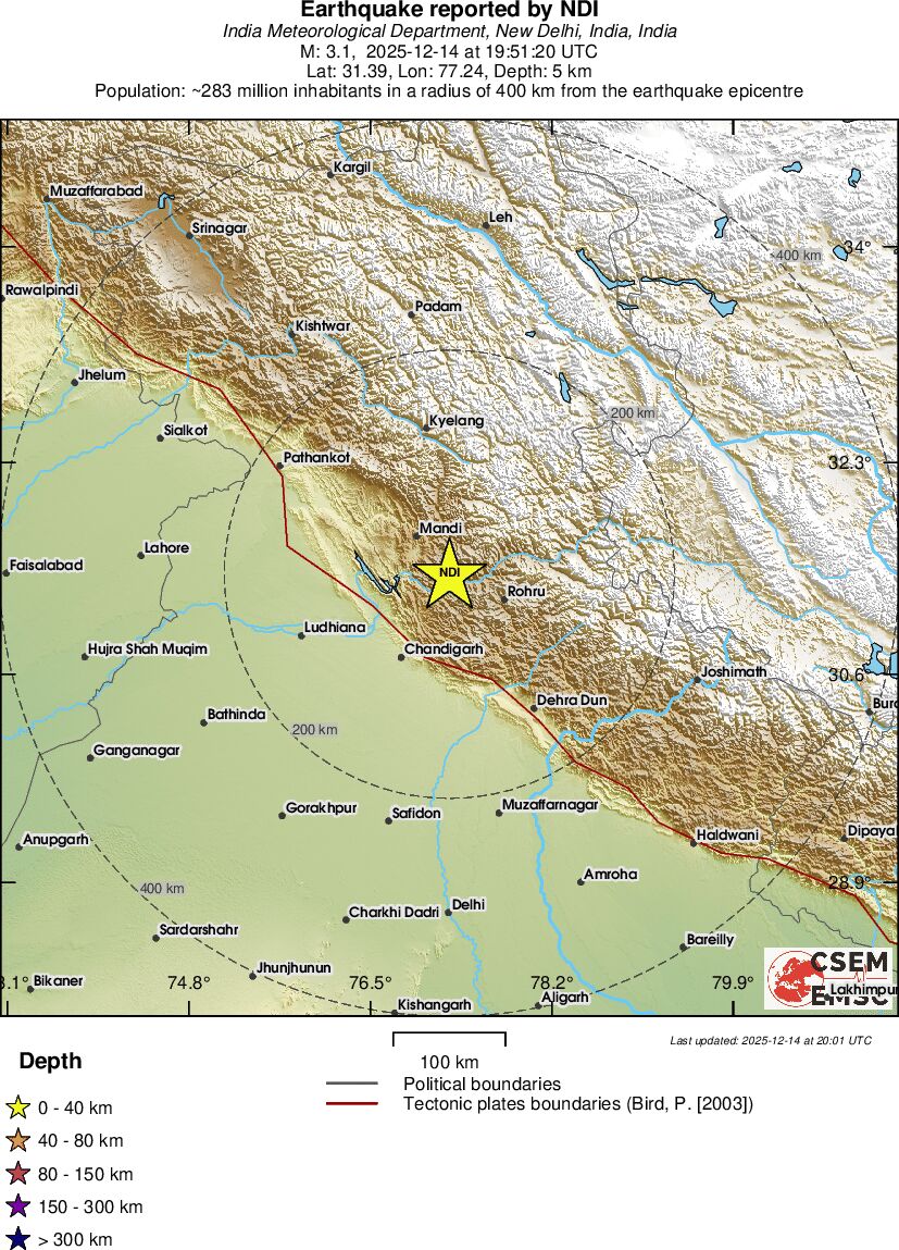 | 3.1 | 5 | 4097 | 19:51:20 | Link | Minor earthquake - HIMACHAL PRADESH, INDIA - December 14, 2025 |