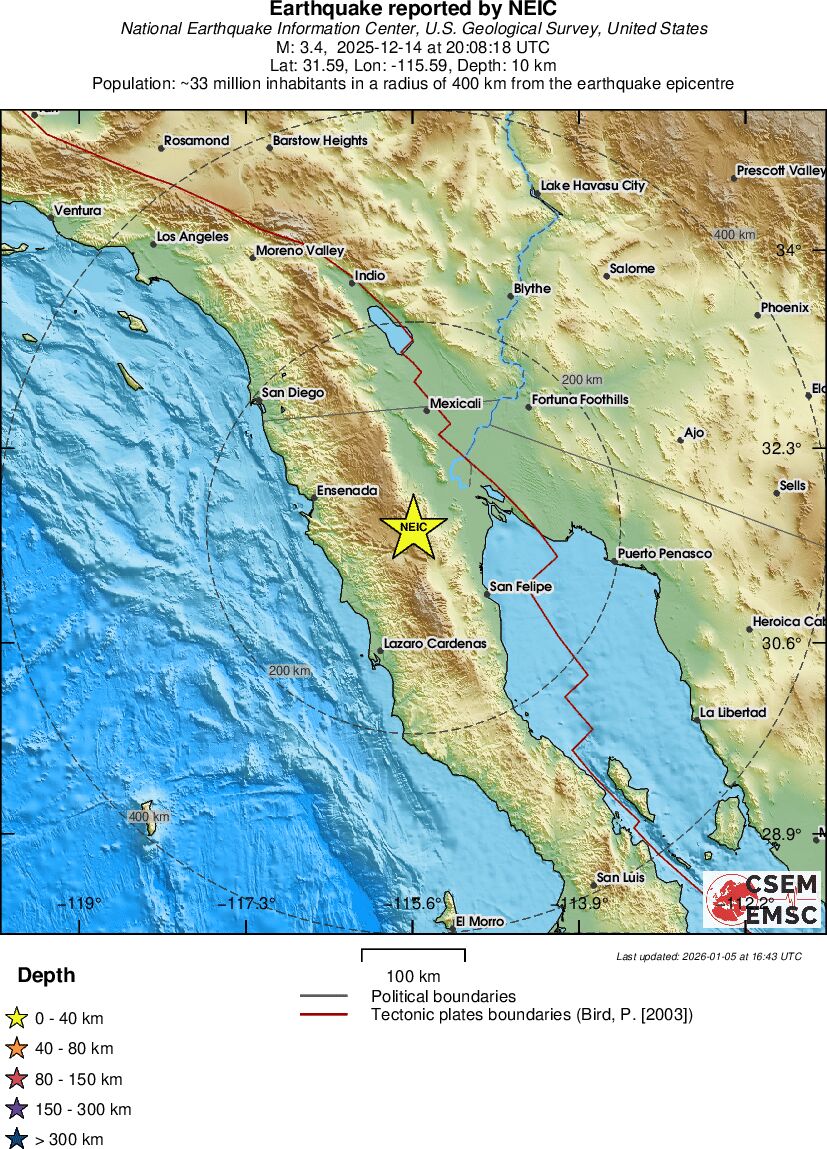 | 3.1 | 10 | 5211 | 20:08:17 | Link | Minor earthquake - BAJA CALIFORNIA, MEXICO - December 14, 2025 |