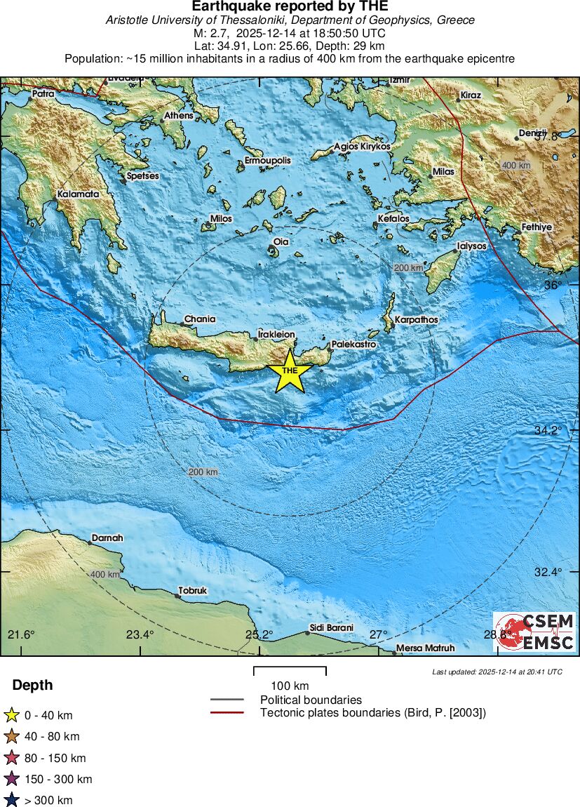 | 2.7 | 29 | 1988 | 18:50:50 | Link | Minor earthquake - CRETE, GREECE - December 14, 2025 |