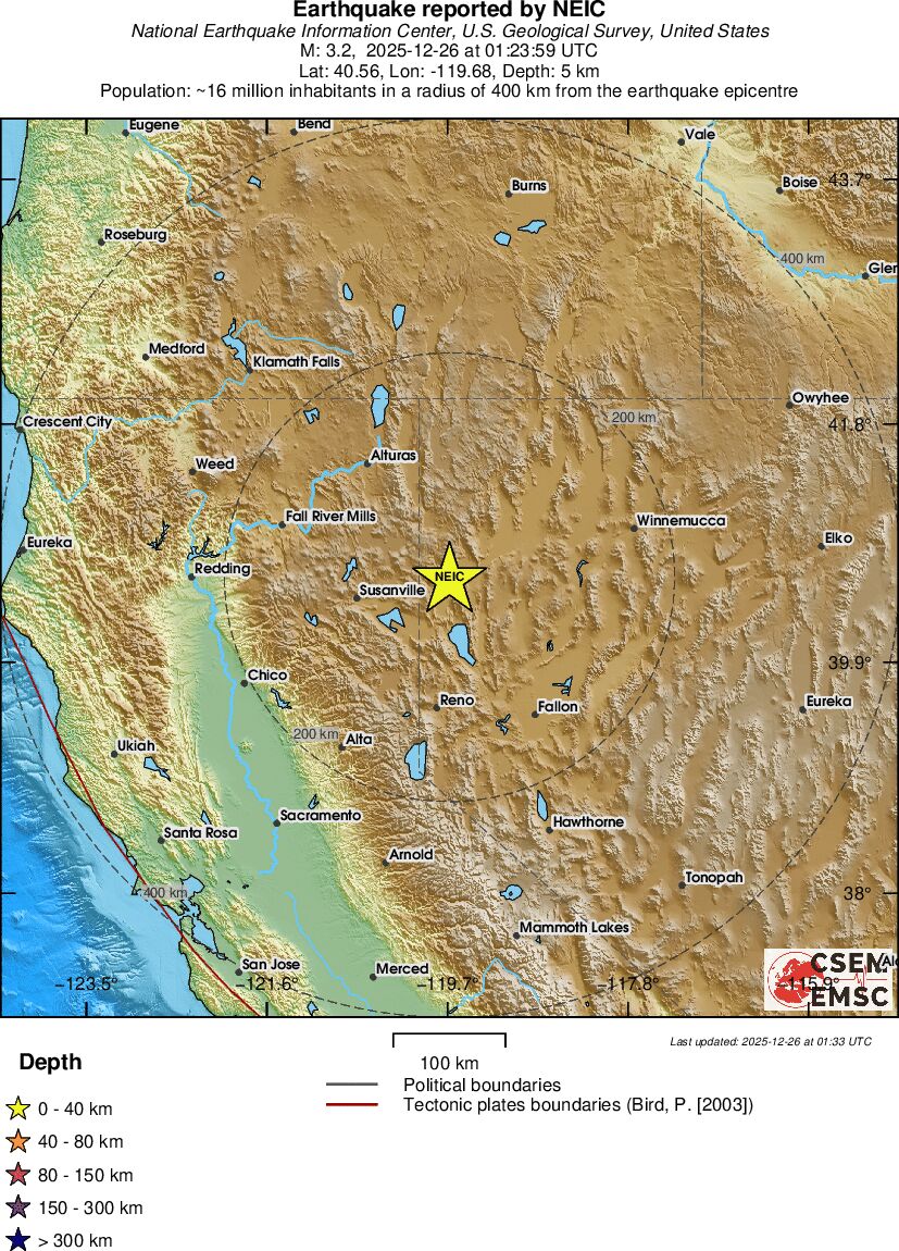 | 3.3 | 5 | 4809 | 01:23:59 | Link | Minor earthquake - NEVADA - December 26, 2025 |