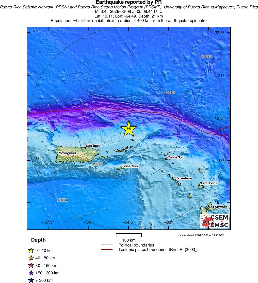 | 3.4 | 23 | 4030 | 01:51:10 | Link | Minor earthquake - VIRGIN ISLANDS REGION - February 8, 2026 |