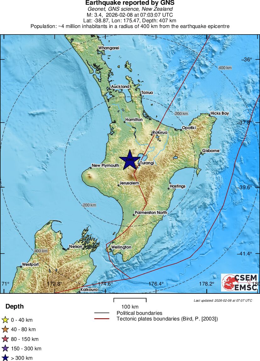 | 3.4 | 407 | 11259 | 07:03:07 | Link | Minor earthquake - NORTH ISLAND OF NEW ZEALAND - February 8, 2026 |