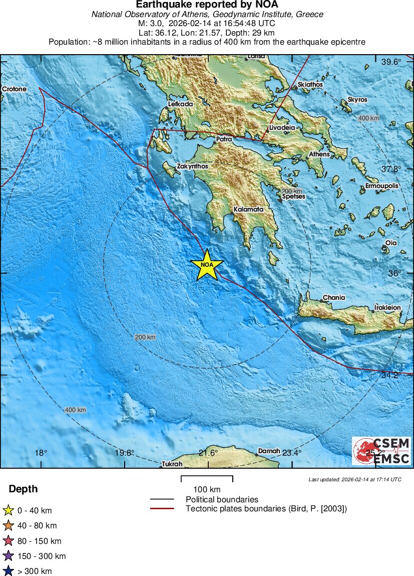 | 3.5 | 14 | 1656 | 16:22:11 | Link | Minor earthquake - IONIAN SEA - February 14, 2026 |